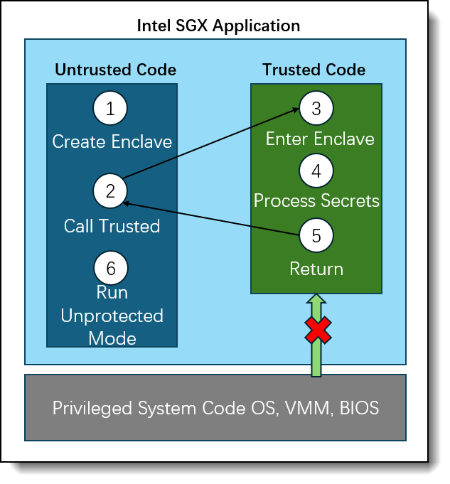 Building an SGX application requires developers to modify their code. When the application is running, the following workflow is executed: