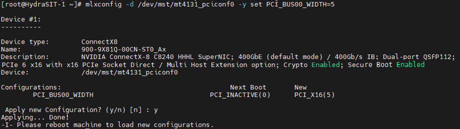 # mlxconfig -d devicename -y set PCI_BUS00_WIDTH=5