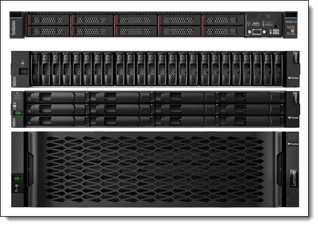 - Lenovo ThinkSystem Storage Arrays: Provides unified storage for backup and immutable repositories. Includes ThinkSystem DM and DG Storage Arrays.