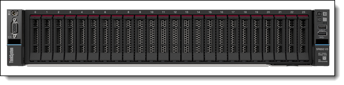 - Lenovo ThinkSystem SR650 V3: A versatile server used for Veeam backup and recovery operations such as: Veeam Backup Console, Veeam Backup Repository and hardened immutable repository.