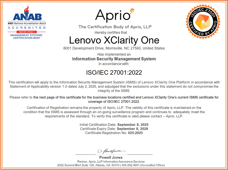 Figure 3. XClarity One ISO27001 Certification
