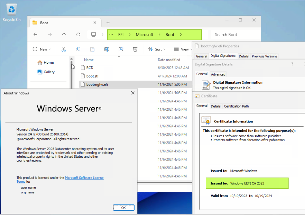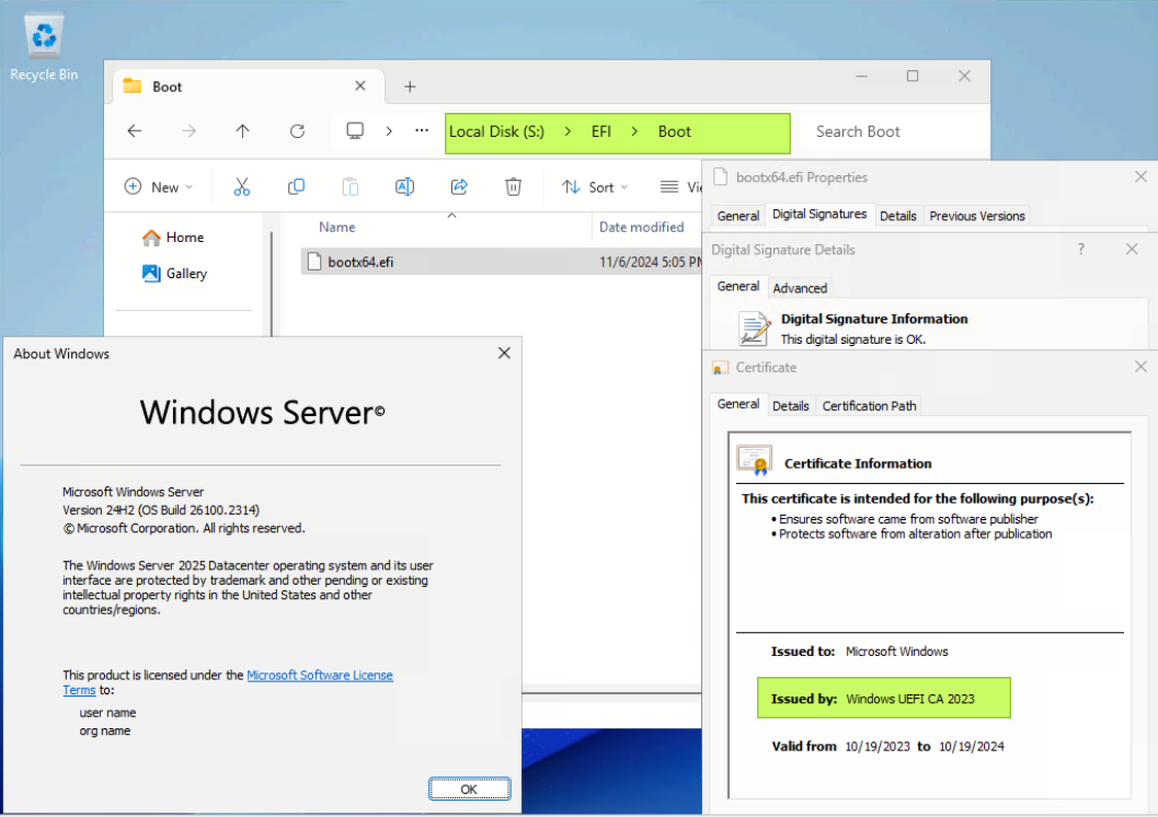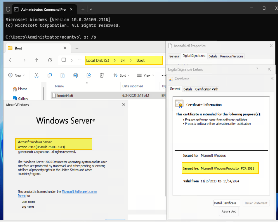 Figure 8. The bootmgfw.efi with CA 2023 signedProperties of S:\EFI\Boot\bootx64.efi file: