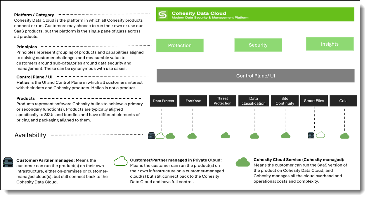 Cohesity Cloud Service (Cohesity managed) means the customer can run the SaaS version of the product, on Cohesity Data Cloud, and Coheisty manages all overhead and operational costs and complexity.