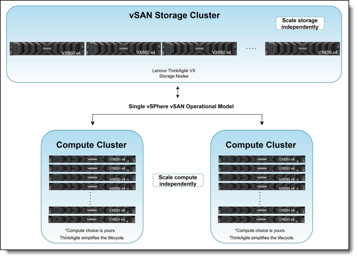 This is where VMware vSAN Storage Clusters, now supported on ThinkAgile VX650 V4, come into play. They offer a way to evolve HCI and not replace it by introducing architectural flexibility while preserving the operational model customers already trust.